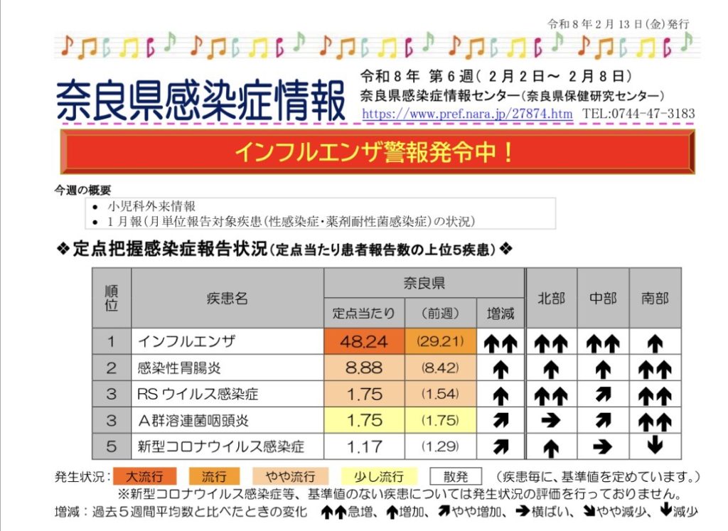 インフルエンザ警報発令中 投稿日 2026年2月15日 著者 admin カテゴリー お知らせ カテゴリー 岡田薬局 カテゴリー あおば薬局 カテゴリー お知らせ ※https://www.pref.nara.jp/secure/330675/0806.pdfより一部抜粋